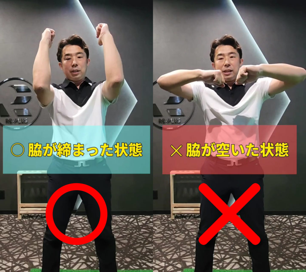 正しい脇の締まりがスイングを安定させる